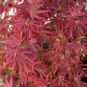 Javor dlanitolistý ´SHAINA´ má vykrajovaný list vínovo červenej farby. Výška v dospelosti dosiahne 1-2 metre.